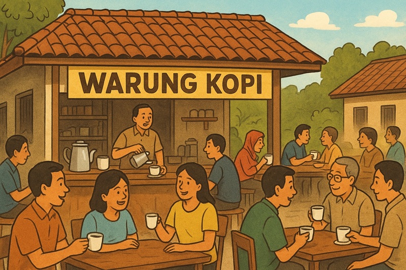 Dan tepatnya. Dari pagi hingga larut malam, kafe Naim adalah salah satu kafe yang unik parlemen rakyat. Tukang becak, pelajar, guru, bahkan PNS semua mampir. Ada yang bicara soal harga pupuk, ada yang marah karena jalan berlubang, dan ada pula yang hanya tertawa mendengar Naim membahas teori konspirasi sandal jepit yang selalu hilang setelah hari Jumat.